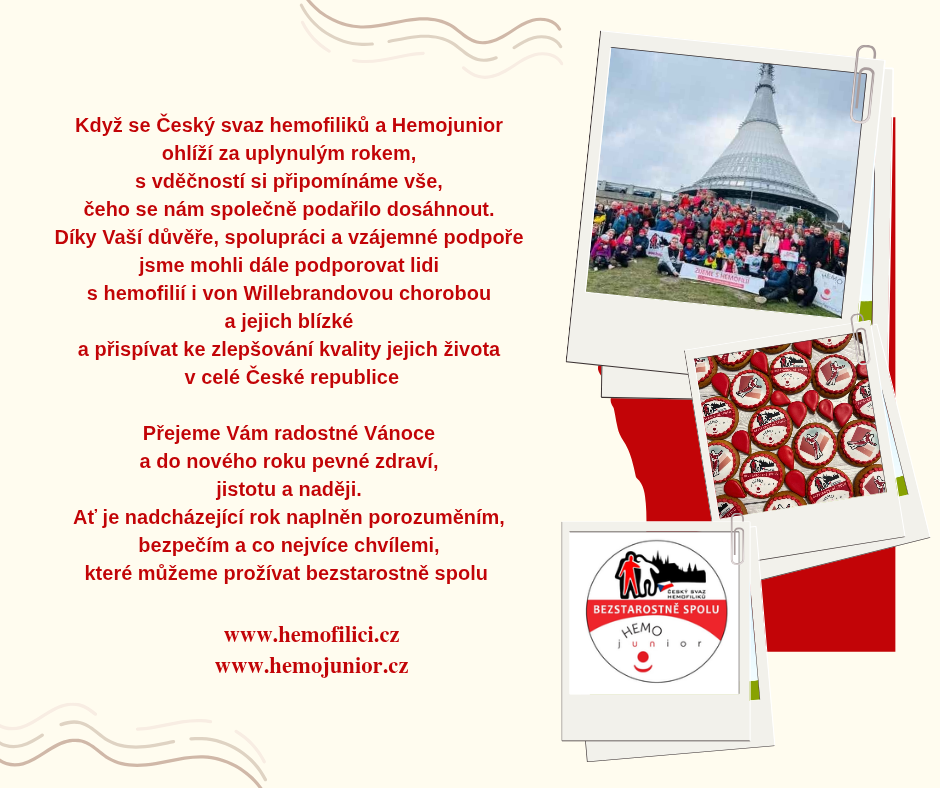 Český svaz hemofiliků a Hemojunior vám přejí všechno nejlepší do roku 2026.