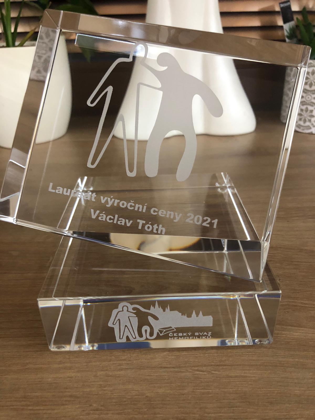Je nám ctí, že laureát výroční ceny Českého svazu hemofiliků pro rok 2021 můžeme předat panu Václavu Tóthovi.